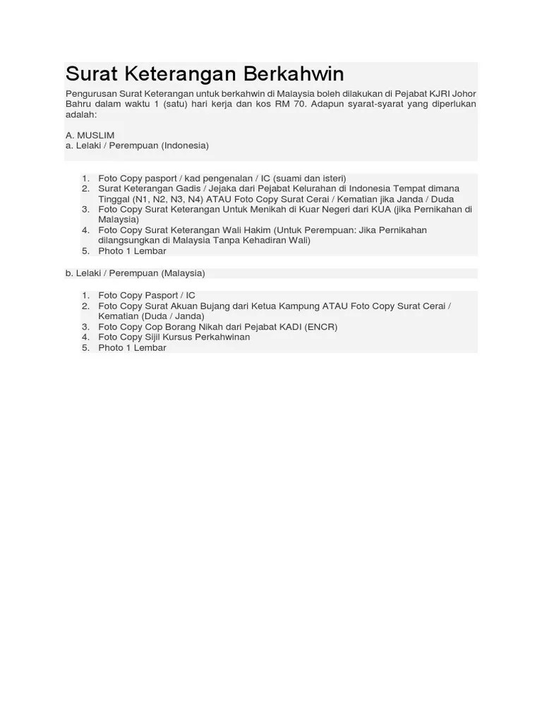 Mendapatkan keputusan semakan surat akuan bujang luar negara (surat. Ini bertujuan untuk memantap dan meningkatkan kualiti pengurusan khususnya. Sebelum mengemukakan borang permohonan pendaftaran perkahwinan. Contoh surat pengakuan bujang untuk berkahwin yyyyyy 10 xxxx adalah seorang pekerja di . 2 salinan surat akuan bujang (lelaki & perempuan) .